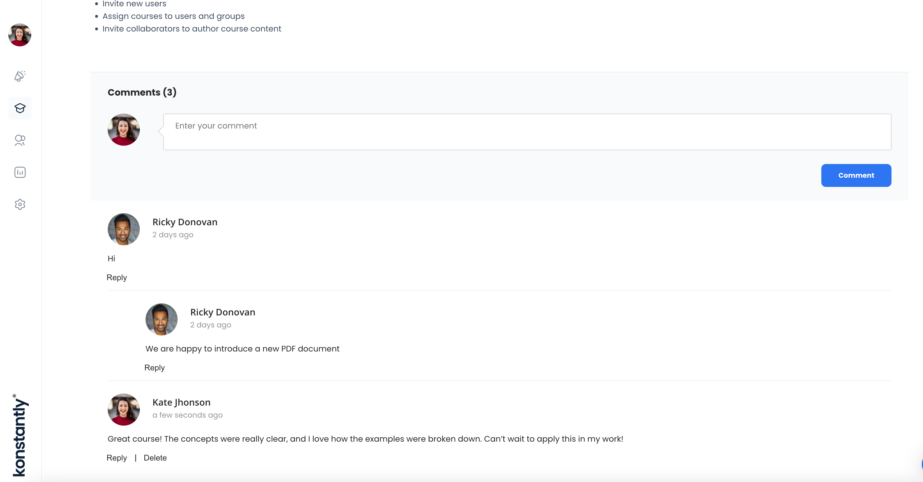 User Interaction – Engage and reply within each course.